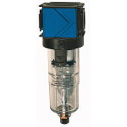 Filter »variobloc« mit Polycarbonatbehälter, BG 2, G 1/2, PE max. 16 bar, Med.-Umgebungstemp. max. 50 °C, manuelles Ablassventil. Zentrifugalabscheider mit Sinter-Filterelement. Die Filtration erfolgt in einem 2-stufigen Prozess durch Zyklonabscheidung (Kondenswasser) und PE-Filterelement (Partikel). Bewährte Serie in modernem Industriedesign, die sich durch einfaches Handling, bequeme Verblockungsmöglichkeit durch neuartige Verbindungsmodule und hervorragende Durchflusswerte auszeichnet.