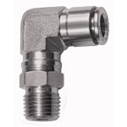 L-Steckverschraubung, drehbar, R 1/4 a., für Schlauch-Außen-Ø 4 mm, Arbeitsdruck max. 20 bar, Edelstahl 1.4404. Für den Einsatz in aggressiven Umgebungen und bei korrosiven Medien, welche sowohl in der Chemie- und Lebensmittelindustrie als auch im Bereich Verpackung, Druckerei und Seefahrt zum Einsatz kommen.