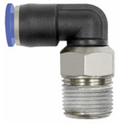 L-Steckverschraubung »Blaue Serie« mini, drehbar, R 1/8, für Schlauch-Außen-Ø 6 mm, Arbeitsdruck max. 10 bar, Kunststoff/MS vern.. Unsere Schnellsteckverbinder-Serie aus Kunststoff bzw. vernickeltem Messing in platzsparender Minibaureihe.