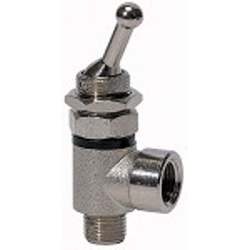 2/2-Wege-Kipphebelventil, beidseitig, Schnellverschraubung Schlauch G 1/8 IG, G 1/8, PN max. 8 bar, Temp. 0 °C bis 70 °C, MS vern.. Handbetätigte Kipphebelventile in 2/2- und 3/2-Wege-Ausführung. Für alle Anwendungen, bei denen Druckluft auf einfache Art ein- und ausgeschaltet oder ein Zylinder von Hand betätigt werden muss. Ausführung in Hohlschraubenbauweise mit Ringstück. Zum direkten Einschrauben am Arbeitsgerät oder zum Schalttafeleinbau. Kleine Baumaße, ideal bei engen Platzverhältnissen.
