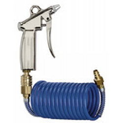 Spiralschlauch-Pistolen-Set, Polyamid, Schlauch-ø 8x6, Mediums-/ Umgebungstemp. -10 °C bis 50 °C, PN max. 10 bar, max. 5,0 m. Sofort einsatzfähiges Schlauchset, bestehend aus einem Spiralschlauch, Polyamid, einer Blaspistole aus Aluminium-Druckguss vernickelt, einer fest eingebundenen Schnellverschlusskupplung NW 7,2 und einem Nippel NW 7,2.