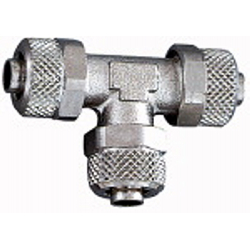T-Verbinder, für Schlauch 5/3 mm, SW 8, Arbeitsdruck max. 18 bar, Messing vernickelt.