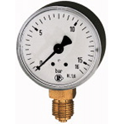 Standardmano. mit Kunststoffgeh., Einfachskala in bar, Anschluss radial unten, G 1/8, Güteklasse 1,6, Messber. 0 - 16,0 bar, Ø 40. Rohrfedermanometer in Standardausführung.