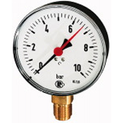 Standardmano. mit Kunststoffgeh., Einfachskala in bar, Anschluss radial unten, G 1/8, Güteklasse 1,6, Messber. 0 - 10,0 bar, Ø 40. Rohrfedermanometer in Standardausführung.