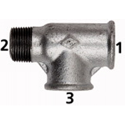 T-Stück 134, IG/IG/AG, Rp/Rp/R 1, schwarzer Temperguss feuerverz.