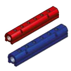 Aluminiumblöcke blau und rot eloxiert bzw. Edelstahl blank zum übersichtlichen Aufbau von