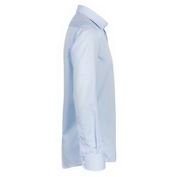 - farblich abgesetzte Kontrastverarbeitung an Manschette, Knopfleiste und Kragen