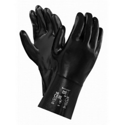 Beschreibung: - Ansells Sol-Knit®-Industriehandschuh schützt in vielen Arbeitsbereichen wirksam vor hohen mechanischen Risiken und Chemikalien. - Dieser äußerst robuste, anatomisch geformte Handschuh zeichnet sich auch bei langwierigen Arbeiten durch einen optimalen Tragekomfort aus. - Eine überragende Beweglichkeit sowie ein sehr guter Nass- und Trockengriff tragen zur Sicherheit des Anwenders und damit einer insgesamt höheren Produktivität bei. Anwendungsbereiche und Einsatzgebiete: Wartungsarbeiten | Vormontagen | Betanken | Entfetten | Metallherstellung Chemische Verarbeitungsprozesse | Agrarchemikalien