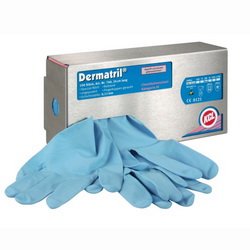 chemische und bakteriologische Kontamination, weist der Dermatril-Einmalschutzhandschuh