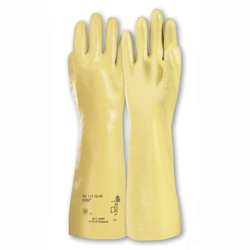 Schutzhandschuh. Mit Hilfe des Spezial-Nitrils erfüllt er alle besonderen Anforderungen an einen