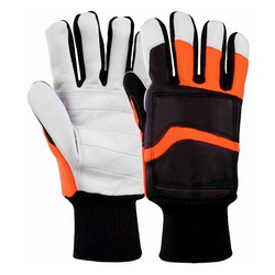 Kettensägenhandschuh aus chromfrei gegerbtem Ziegenleder,