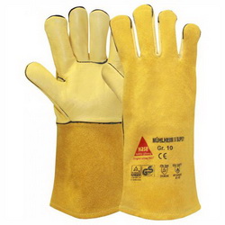 Schweißerhandschuhe aus kräftig-weichem Rindnarbenleder.
