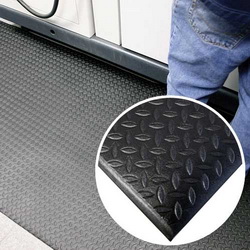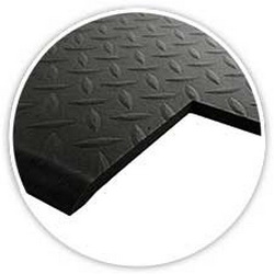 Einlagige, ergonomische Arbeitsplatzmatte mit griffiger Tränenblechoberfläche.