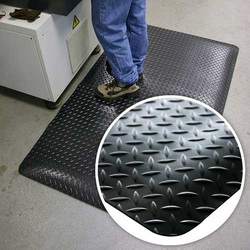 Zweilagige, langlebige Premium-Ergonomiematte mit griffiger Tränenblechoberfläche.