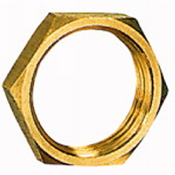 Sechskant-Gegenmutter, G 3/8, SW 19, Messing, Arbeitsdruck max. 25 bar, Betriebstemp. max. 150 °C.