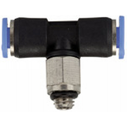 T-Steckverschraubung »Blaue Serie« mini, drehbar, M6, für Schlauch-Außen-Ø 6 mm, Arbeitsdruck max. 10 bar, Kunststoff/MS vern.. Unsere Schnellsteckverbinder-Serie aus Kunststoff bzw. vernickeltem Messing in platzsparender Minibaureihe.