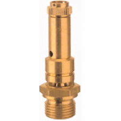 Sicherheitsventil DN 10, Messing, Betriebstemperatur -25 °C bis 180 °C, G 3/8, SW 27, Ansprechdruck 0,25 bar, baumustergeprüft. Für Druckluft und ungiftige, nicht brennbare Gase, frei abblasend, deshalb nicht für Flüssigkeiten verwendbar, nicht geeignet für Wasserdampf! Die Ventile sind TÜV-zugelassen und haben eine TÜV-Bauteilprüfnummer.