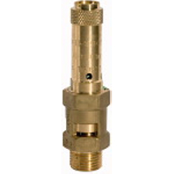 Sicherheitsventil DN 8, Messing, Betriebstemperatur -25 °C bis 180 °C, G 1/4, SW 20, Ansprechdruck 46 bar, baumustergeprüft. Für Druckluft und ungiftige, nicht brennbare Gase, frei abblasend, deshalb nicht für Flüssigkeiten verwendbar, nicht geeignet für Wasserdampf! Die Ventile sind TÜV-zugelassen und haben eine TÜV-Bauteilprüfnummer.