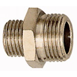 Doppelgewindenippel, G 1/8 a., G 1/4 a, SW 17, Messing, Arbeitsdruck max. 25 bar, Betriebstemp. max. 150 °C.