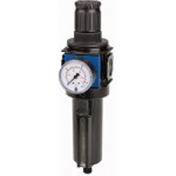 Filterregler »variobloc« mit Metallbehälter inkl. Sichtrohr und Manometer, BG 2, G 1, PE max. 20 bar, Regelbereich 0,5 - 10 bar. Vordruckunabhängiger, rücksteuerbarer Membrandruckregler mit Sekundärentlüftung in Kombination mit einem Zentrifugalabscheider. Die Druckeinstellung kann durch Eindrücken des Handrads arretiert werden. Bewährte Serie in modernem Industriedesign, die sich durch einfaches Handling, bequeme Verblockungsmöglichkeit durch neuartige Verbindungsmodule und hervorragende Durchflusswerte auszeichnet.