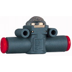 Schnellentlüftungsventil »lineonline«, mit Schalldämpfer, Schlauch - Schlauch, für Schlauch-Ø 4 mm, Betriebsdruck 1 - 10 bar. Die Entlüftung wird durch Verwendung eines rostfreien Schalldämpfers oder durch Verwendung eines Einsteckverbinders mit Luftabfuhr gedämpft.