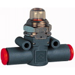Druckanzeiger »lineonline«, Schlauch - Schlauch, für Schlauch-Ø 6 mm, Betriebsdruck 2 - 10 bar. Im drucklosen Zustand erscheint die Druckanzeige transparent. Unter Druck zeigt die Druckanzeige ein rotes Signal.