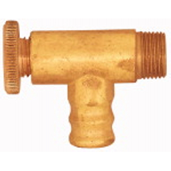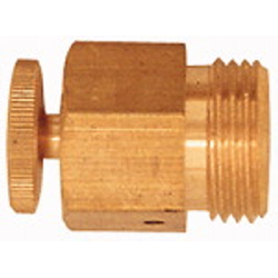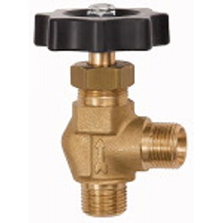 Ablass- und Entlüftungsventil, Messing, Eckform, mit Tülle für Schlauch LW 12, Rändelschraube, G 1/4, PN max. 25 bar.