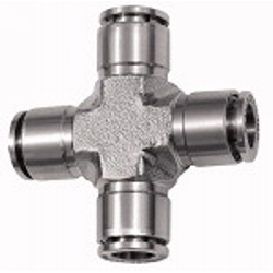 X-Steckverbindung, für Schlauch-Außen-Ø 10 mm, Arbeitsdruck max. 20 bar, Edelstahl 1.4404. Für den Einsatz in aggressiven Umgebungen und bei korrosiven Medien, welche sowohl in der Chemie- und Lebensmittelindustrie als auch im Bereich Verpackung, Druckerei und Seefahrt zum Einsatz kommen.