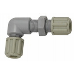 Winkel-Schottverbindung, M14x1,5, für Schlauch 6/8 mm, SW 19, Arbeitsdruck max. 10 bar (20 °C) / max. 2,5 bar (90 °C), PP. Chemisch beständig gegenüber fast allen anorganischen Säuren und Basen, auch bei hoher Konzentration und Temperaturen bis 90 °C.