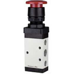 5/2-Wegeventil, manuell »M5«, Pilztaster, monostabil, Schalttafeleinbau, G 1/4, Betriebsdr. 0 - 10 bar, Temp. -20°C bis 70°C, rot. 5/2-Wegeventile - handbetätigt, für Schalttafelaufbau -