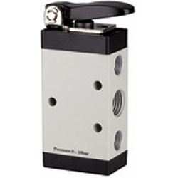 5/2-Wegeventil, manuell betätigt, »M5«, kurzer Hebel, monostabil, G 1/8, Betriebsdruck 0 - 10 bar, Temp. -20 °C bis 70 °C. 5/2-Wegeventile - handbetätigt, für Schalttafelaufbau -