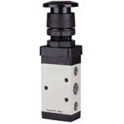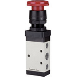 5/2-Wegeventil, manuell betätigt, »M5«, Pilztaster, Notrastung, bistabil, G 1/8, Betriebsdr. 0 - 10 bar, Temp. -20 °C bis 70 °C. 5/2-Wegeventile - handbetätigt, für Schalttafelaufbau -
