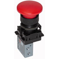 3/2-Wege-Miniaturventil, manuell, Pilztaster Notrastung, NC