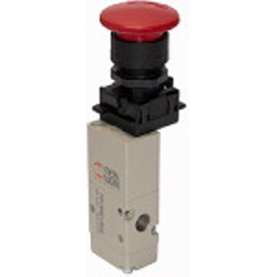 3/2-Wegeventil, manuell, Pilztaster m. Notrastung, NC, monost., Anschluss G1/8, Betr.dr. 2,5-10bar, Betr.temp. -10°C bis 60°C, Alu.