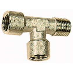 T-Stück, innen/innen/außen, G/R 1/8, SW 10, Betriebsdruck max. 60 bar, Betriebstemperatur max. 150 °C, Messing vernickelt.