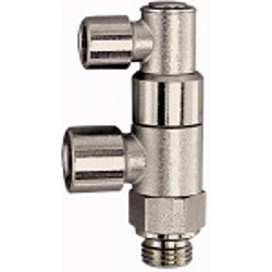 Stoppventil pneumatisch betätigt, G 1/4, G 1/4 i., G 1/8 i., Arbeitsdr. max. 10 bar, Mediums-/Umgebungstemp. max. 70 °C, MS vern.. Für schnelle Positionier- und Stopp-Funktionen und für Not-Schaltungen (z.B. Not-Aus). Liegt am Anschluss 3 ein Steuersignal an, kann die Druckluft vom und zum Zylinder fließen. Liegt kein Steuersignal mehr an, wird der Druckluftstrom vom und zum Zylinder gesperrt und dadurch der Zylinder in der gewünschten Position gestoppt. Die Stopp-Ventile werden anstelle der normalen Schlauchanschlüsse direkt auf den Zylinder geschraubt. Hinweis: Der Steuerdruck ist abhängig vom Betriebsdruck.