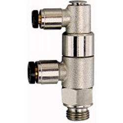 Stoppventil pneumatisch betätigt, G 3/8, G 3/8 i., G 1/8 i., Arbeitsdr. max. 10 bar, Mediums-/Umgebungstemp. max. 70 °C, MS vern.. Für schnelle Positionier- und Stopp-Funktionen und für Not-Schaltungen (z.B. Not-Aus). Liegt am Anschluss 3 ein Steuersignal an, kann die Druckluft vom und zum Zylinder fließen. Liegt kein Steuersignal mehr an, wird der Druckluftstrom vom und zum Zylinder gesperrt und dadurch der Zylinder in der gewünschten Position gestoppt. Die Stopp-Ventile werden anstelle der normalen Schlauchanschlüsse direkt auf den Zylinder geschraubt. Hinweis: Der Steuerdruck ist abhängig vom Betriebsdruck.