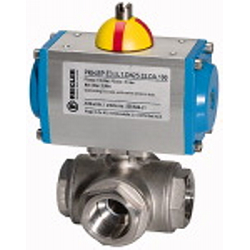 Edelstahlkugelhahn, pneumat. Stellantrieb, T-Bohrung T1, Rp 1 1/4