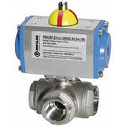 Edelstahlkugelhahn, pneumat. Stellantrieb, T-Bohrung T1, Rp 1 1/2
