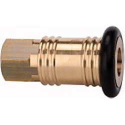 Schnellverschlusskupplung NW 19, Messing blank, G 1 IG, Betriebsdruck 0 - 35 bar, Mediums-/Umgebungstemp. -20 °C bis 100 °C. Einseitig absperrende und robuste Schnellverschlusskupplung mit extrem hoher Durchflussleistung. Um Verletzungen oder den Peitschenhiebeffekt zu vermeiden, empfehlen wir den Stecknippel beim Entkuppeln mit einer Hand festzuhalten.