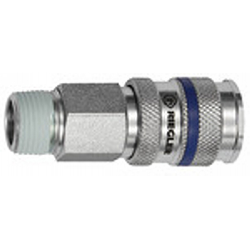 Schnellverschlusskupplung NW 7,8, Stahl, R 1/2 AG, Betriebsdruck 0 - 35 bar, Mediums-/Umgebungstemp. -20 °C bis 100 °C. Einseitig absperrende, hochwertige und robuste Schnellverschlusskupplung mit hohen Durchflusswerten. Um Verletzungen oder den Peitschenhiebeffekt zu vermeiden, empfehlen wir den Stecknippel beim Entkuppeln mit einer Hand festzuhalten.