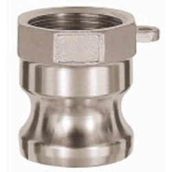 Kamlok-Schnellkupplungsstecker mit Innengewinde, Typ A, ES 1.4401, G 4, Stecker-Ø 120 mm, PN max. 16 bar, Temp. -20 °C bis 95 °C. Hochwertiges, robustes Universalkupplungssystem für Klemmschaleneinband zur schnellen und einfachen Verbindung zweier Schläuche bzw. eines Schlauchs mit einem Maschinenanschluss.