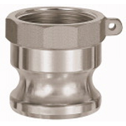 Kamlok-Schnellkupplungsstecker mit Innengewinde, Typ A, ES 1.4401, G 1, Stecker-Ø 37 mm, PN max. 16 bar, Temp. -20 °C bis 95 °C. Hochwertiges, robustes Universalkupplungssystem für Klemmschaleneinband zur schnellen und einfachen Verbindung zweier Schläuche bzw. eines Schlauchs mit einem Maschinenanschluss.