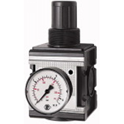 Druckregler »multifix«, inkl. Manometer, BG 4, G 3/4, PE max. 16 bar, Mediums-Umgebungstemp. max. 60 °C, Regelbereich 0,2 - 6 bar. Vordruckunabhängiger, rücksteuerbarer Membrandruckregler mit Sekundärentlüftung. Die Druckeinstellung kann durch Eindrücken des Handrads arretiert werden.
