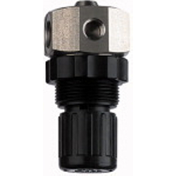 Edelstahl-Druckregler, 1.4401, mit Sekundärentlüftung (rücksteuerbar), inkl. Manometer, BG 1, G 1/4, Regelbereich 0,4 - 4,0 bar. Edelstahlregler für den Einsatz in der chemischen Industrie, Bergbau, Apparate- und Sondermaschinenbau, Pneumatik, usw. Druckeinstellung mittels Sechskantschraube.