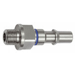 Unverwechselbarer Nippel NW 6, ISO 6150 C, Edelstahl, 2-stufig, G 1/4 AG, blau, Betriebsdruck max. 25 bar, Temp. -15 °C bis 200 °C.