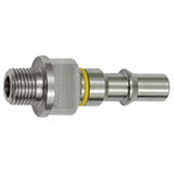 Unverwechselbarer Nippel NW 6, ISO 6150 C, Edelstahl, 2-stufig, G 1/4 AG, gelb, Betriebsdruck max. 25 bar, Temp. -15 °C bis 200 °C.