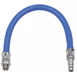 Vibrationsdämpfer mit 300 mm PVC-Werkstattschlauch, Nippel NW 7,2 - NW 7,8, G 1/4 AG, verpresst, max. 15 bar, Temp. -20°C bis 60°C. Beim Einsatz von pulsierendem Werkzeug empfiehlt sich die Beachtung der ISO 6150, § 7.1. Die Norm empfiehlt, einen mindestens 300 mm langen, flexiblen Schlauch zwischen dem pulsierenden Werkzeug und der Schnellverschlusskupplung zu installieren.