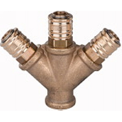 Verteiler, 3 Schnellverschlusskupplungen NW 7,2 Messing, G 3/8 IG