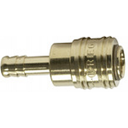 Schnellverschlusskupplung NW 7,2 »connect line«, MS blank, Tülle LW 13, Betriebsdr. 0-35 bar, Mediums-/Umgeb.temp. -20°C bis 100°C. Die universelle Einhand-Schnellverschlusskupplung in einseitig absperrender Ausführung zu einem enorm günstigen Preis. Durch die geschlossene Verriegelungshülse wird ein Verschmutzen der Innenteile verhindert. Bei Verwendung von Stahlnippeln kann diese Kupplung aufgrund ihrer gehärteten Verriegelungsstifte auch an Druckluftwerkzeugen verwendet werden. Kupplungen und Nippel mit dichtender Gewindebeschichtung: Montagefertige Polyacrylat-Gewindebeschichtung für sofortige und hohe Dichtheit ohne Aushärtungsprozess. Das dauerelastische Dichtmaterial kann bis zu 45° nachjustiert werden, ohne die Dichtheit zu beeinflussen. Gesundheitlich unbedenklich. Leichte Montage und Demontage. Um Verletzungen oder den Peitschenhiebeffekt zu vermeiden, empfehlen wir den Stecknippel beim Entkuppeln mit einer Hand festzuhalten.